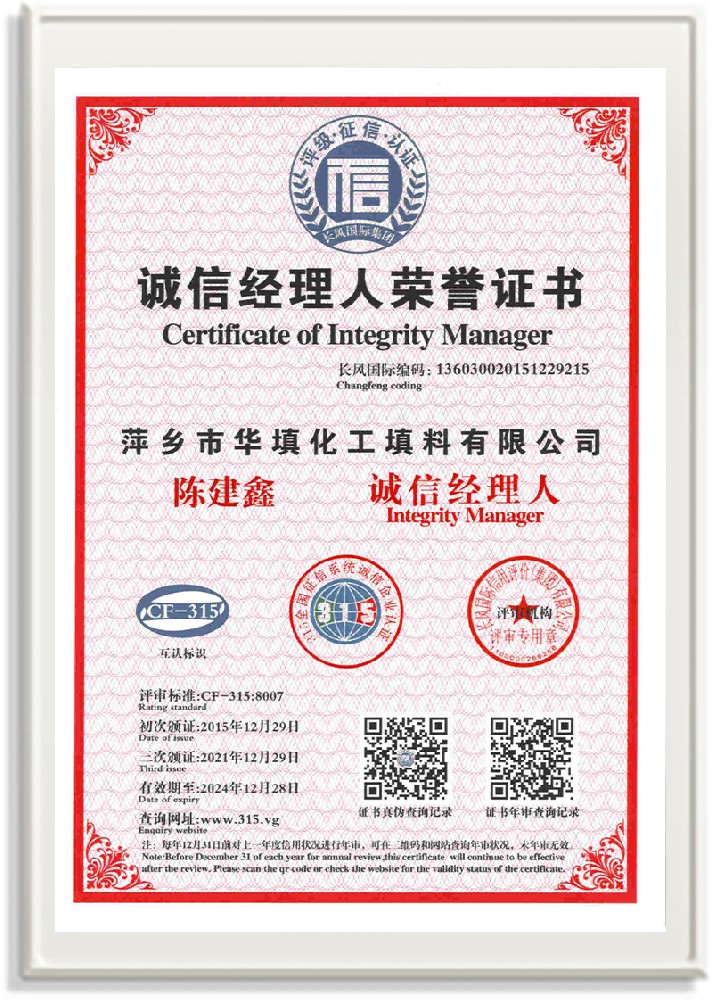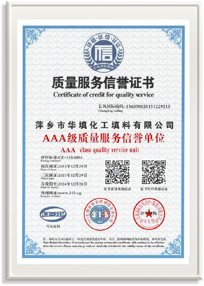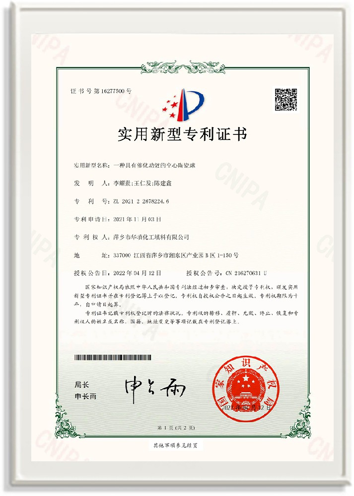 萍鄉(xiāng)市華填化工填料有限公司,位于320國道、109國道、浙贛鐵路、昌金高速公路貫穿其中,交通便利,是江西西部一顆燦爛明珠,創(chuàng)建于20世紀70年代初期,是中國石油天然氣股份有限公司“能源一號網(wǎng)”會員企業(yè)、中國石化物資采購電子商務網(wǎng)絡和中國海洋石油總公司采辦業(yè)務系統(tǒng)成員單位,是上海大學江西材料基因組工程產(chǎn)業(yè)研究院工業(yè)陶瓷產(chǎn)業(yè)創(chuàng)新聯(lián)盟基地,且通過ISO9001:2015質(zhì)量管理體系、ISO14001:2015環(huán)境管理體系、ISO45001:2018職業(yè)健康安全管理體系認證的化工填料生產(chǎn)企業(yè)。公司擁有陶瓷、塑料、金屬填料、催化劑、活性氧化鋁、分子篩等產(chǎn)品生產(chǎn)線,現(xiàn)有固定資產(chǎn)3616萬元,占地面積3.8萬平方米。公司具有悠久的生產(chǎn)歷史、雄厚的技術(shù)力量和先進的生產(chǎn)工藝設備,可生產(chǎn)工業(yè)瓷球(支撐劑)、陶瓷、金屬、塑料質(zhì)的規(guī)整、散堆化工填料及分子篩、催化劑、生化濾料、活性氧化鋁、石化助劑、活性炭、環(huán)保材料、耐火材料等系列的200多種規(guī)格型號產(chǎn)品。